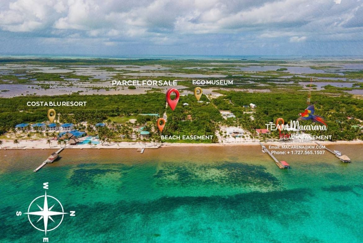 Positioned 7 miles north of San Pedro Town, the lot is second row from the Caribbean Sea with a defined beach access easement, allowing you to reach the shoreline in about 300 feet. The property’s generous dimensions are: The surveyed size of 80 ft x 260 ft, 20,800 sq. ft. (0.48 acres), and expansive 340 ft of road frontage make it one of the most dynamic development sites in the area.